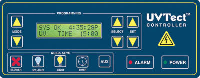 96" Polypropylene Class 100 Horizontal Laminar Flow Clean Bench. Fitted with UVTect microprocessor controller. Price includes HEPA filters, initial prefilters and fluorescent lights. 110VAC